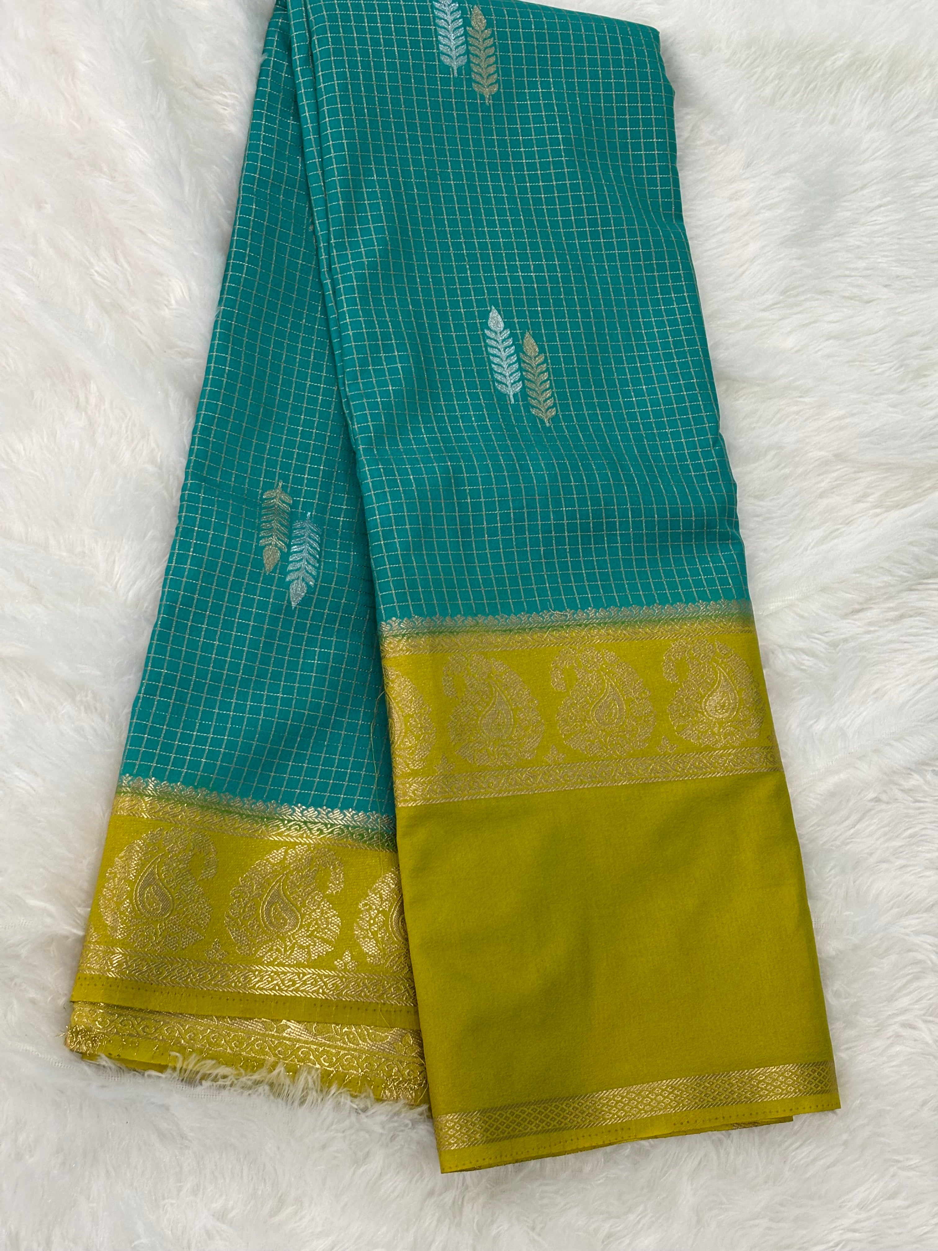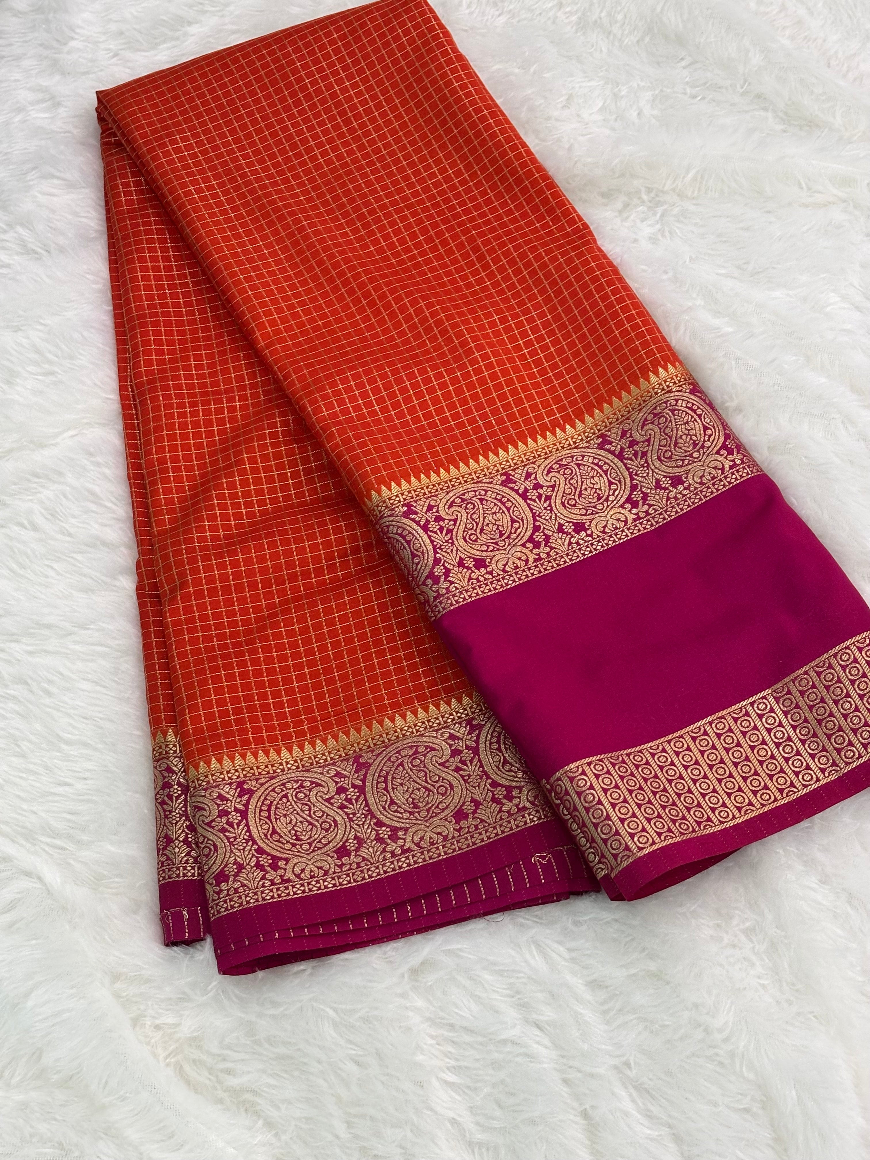 Chex semi mysore crepe saree in contrast (premium)
