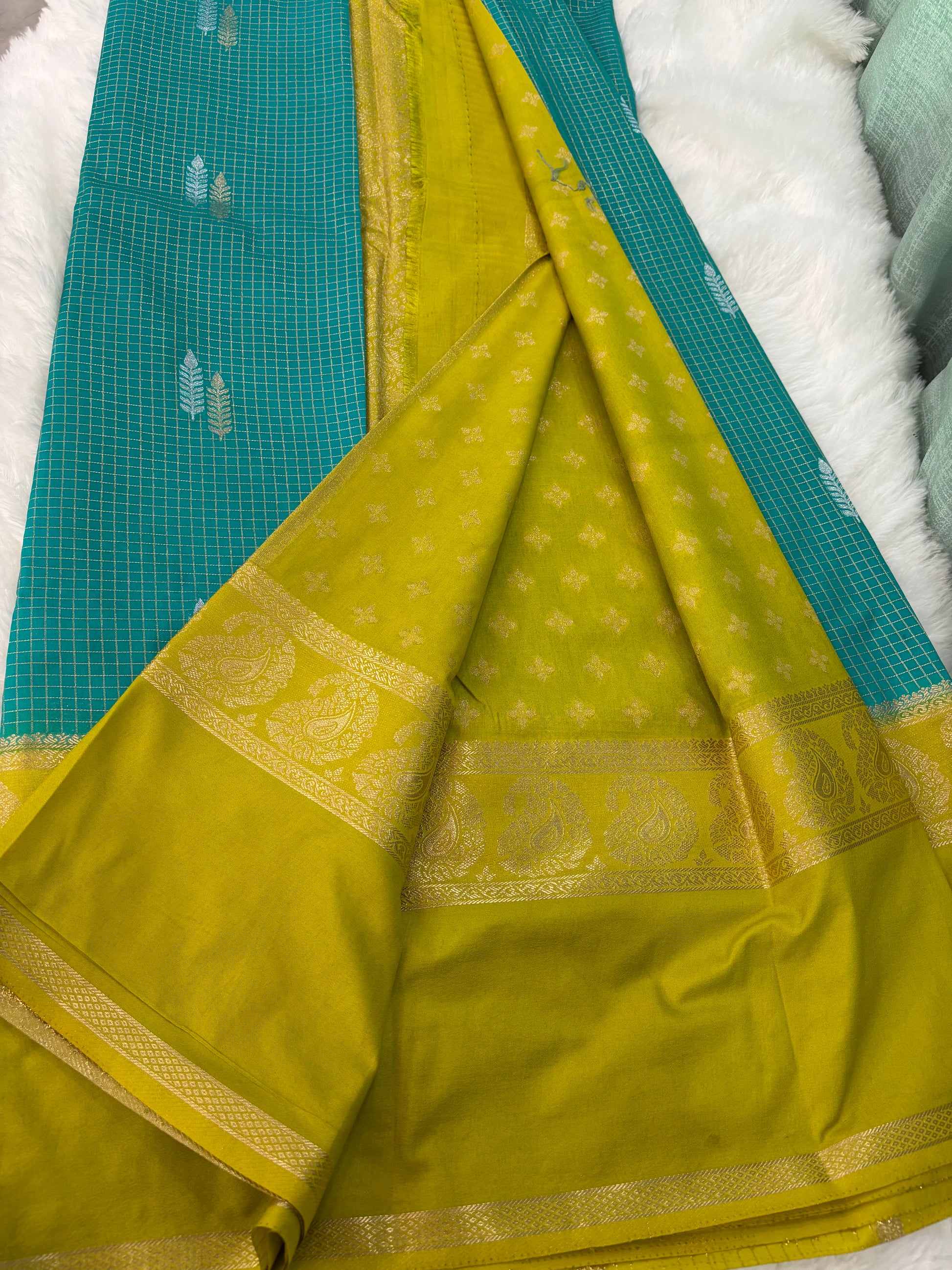 CHEX SEMI MYSORE CREPE SAREE IN CONTRAST (PREMIUM)